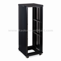 This unique server cabinet is built without doors making it easy to monitor and access the front and back of your network equipment. Side panels are included with this series to help enclose and protect your system. This Server Cabinet is suitable for network servers, battery backups, switching banks, and other larger network equipment. The cabinet features laser knockouts allowing you to install fans, while removable slots provide numerous cable routing options.